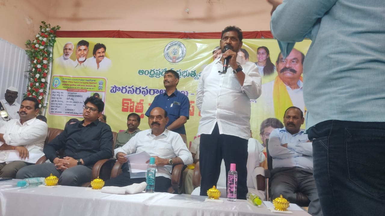 ఈసందర్బంగా మార్కెట్ యార్డుచైర్మన్ గుంటుపల్లి హరిబాబు మాట్లాడుతూ కూటమి ప్రభుత్వం ప్రజలకు స్మార్ట్ గా ప్రజలకు సేవలందిస్తోందన్నారు..ఓవైపు సంక్షేమం మరో వైపి అభివృద్ది తోపాటుగా టెక్నాలజీ సహాయంతో ప్రజలకు మైరుగైన సేవలను ముఖ్యమంత్రి చంద్రబాబు అందిస్తున్నారన్నారు..నేడు ప్రజలకు అందిస్తున్న రేషన్ స్మార్ట్ కార్డులు మల్టీ పర్సస్ గా ఉపయోగపడతాయని రేషన్ కార్డు దారులకు ఈ స్మార్ట్ రేషన్ కార్డులు అనేక రకాలుగా ఉపయోగపడతాయన్నారు..కార్యక్రమంలో జాయింట్ కలెక్టరు విష్ను చరణ్, సబ్ కలెక్టరు చల్లా విశ్వనాద్, తహసిల్దారు సత్య శ్రీనివాసులు తెలుగుదేశం పార్టీ నేతలు కార్యకర్తలు పాల్గొన్నారు..
