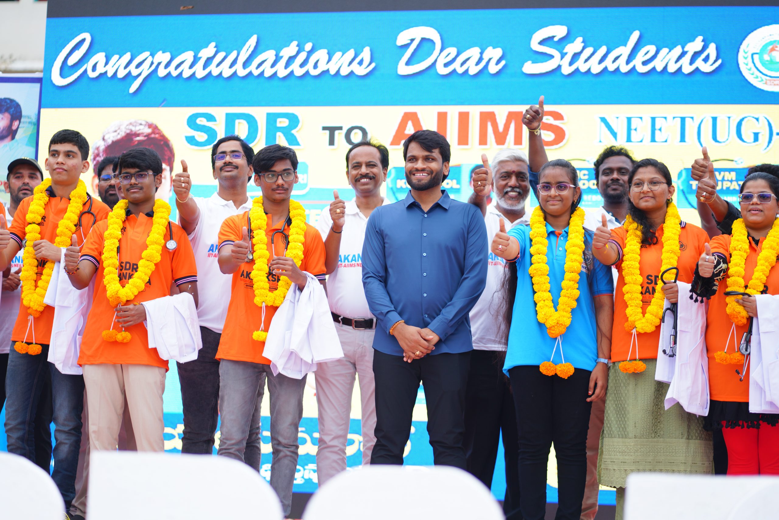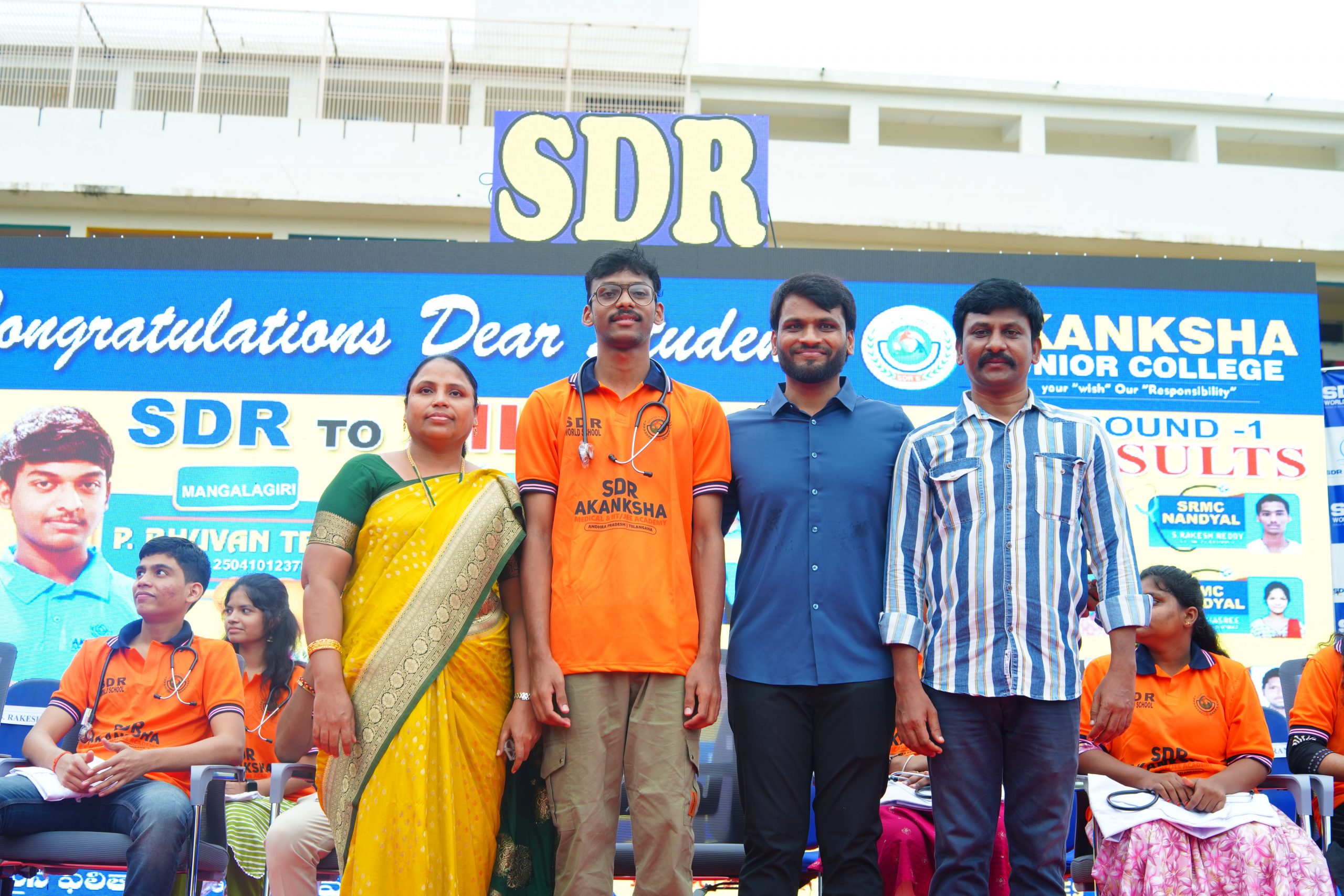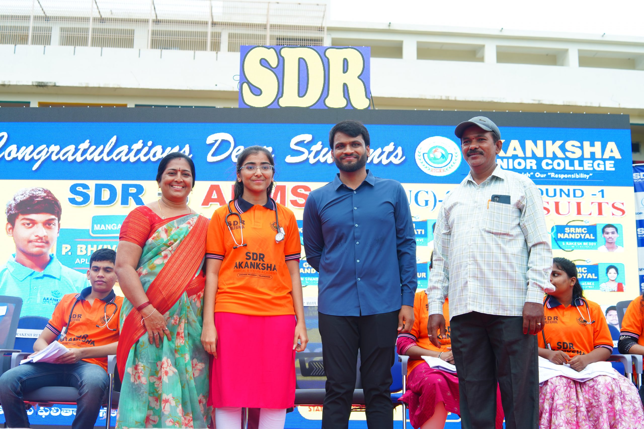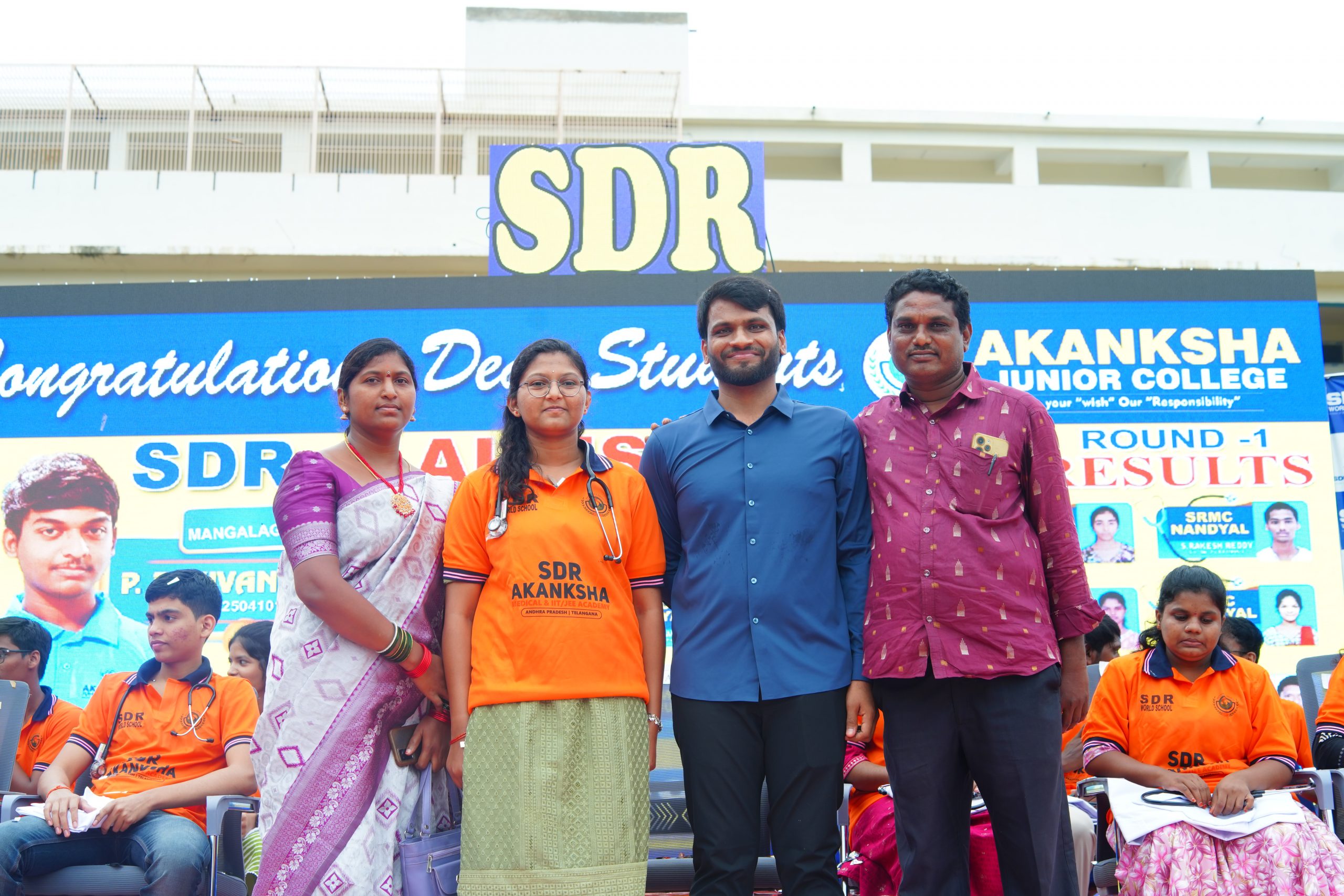 ఈ కార్యక్రమానికి కళాశాల చైర్మన్ కొండారెడ్డి ముఖ్య అతిదిగా హాజరయి విద్యార్థులను అభినందించారు..ఈసందర్బంగా చైర్మన్ కొండారెడ్డి మాట్లాడుతూ మేనేజ్ మెంటు అందించిన ప్రోత్సాహం, ఉత్తమమైన వాతావరణం వల్ల తమ విద్యార్ధులు దేశంలోని ప్రముఖ విద్యాసంస్ధలలో సీట్లు సాదించారన్నారు..మొత్తంగా 22 మంది విద్యార్ధులు Medical విభాగములో మరియు 7 మంది విద్యార్ధులు లు IIT/NIIT విభాగములో సీట్లు సాదించారని,వారికి అభినందనలు తెలుపుతున్నామన్నారు..తమ విద్యార్దులకు ఉత్తమమైన వాతావరణం ,నాణ్యమైన భోదన అందించడం ద్యేయంగా తమ విద్యాసంస్ధలు పనిచేశాయని అదే కారణంగా SDR Akanksha Junior College విద్యార్ధులు దేశ వ్యాప్తంగా ఉన్న ప్రతిష్టాత్మక MEDICAL, NIT, IIITలోలఅడుగు పెడుతున్నారన్నారు. భవిష్యత్తులో మరింత మంది విద్యార్ధులు జాతీయ స్థాయిలో రాణించాలని ఆశిస్తున్నామన్నారు..విద్యార్ధులు తమ అభిప్రాయాలు వ్యక్తంచేస్తూ చైర్మన్ కొండారెడ్డి గారి సహకారం మేనేజ్ మెంటు ఇచ్చిన ప్రోత్సాహం వల్ల మేము ఈ విజయాలు సాదించగలిగామన్నారు..ఈ సందర్భముగా విద్యార్ధుల తల్లి దండ్రుల మాట్లాడుతూ తమ పిల్లలు ఇంత అద్బుతమైన పలితాలు సాదించడం చాల గర్వకారణంగా ఉందని తెలియచేశారు.ఇకపై తమ ఊరి పిల్లలు హైదరాబాదు, విజయవాడ లాంటి దూర ప్రాంతాలకు వెళ్లాల్సిన అవసరం లేదన్నారు..SDR Akanksha Junior College లో అద్బుతమైన పలితాలు వస్తున్నాయి కాబట్టి ఇదే సరైన ఎంపిక అని అన్నారు…