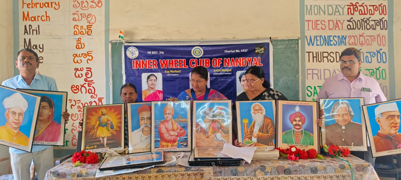 బనగానపల్లె మండలం టంగటూరు ప్రాదమిక పాఠశాలకు నంద్యాల ఇన్నర్ వీల్ లామినేటెడ్ చిత్రపటాలను బహుకరించింది..ఈమేరకు నంద్యాల ఇన్నర్ వీల్ క్లబ్ అద్యక్షురాలు m.n.మల్లేశ్వరి ఆధ్వర్యంలో టంగుటూరు లోని ఎంపీ ఎలిమెంటరీ స్కూల్ కు అవసరమైనటువంటి దేశనాయకులు ,స్వాతంత్ర సమరయోధుల లామినేటెడ్ చిత్రపటాలను ఇన్నర్వీల్ క్లబ్ సభ్యులు v.శోభరాణి మరియు ప్రెసిడెంట్ m.n.మల్లేశ్వరి గారి అర్థిక సహకారముతో ప్రధానోపాధ్యాయుడు జగదీష్ గారికి అందజేయడం జరిగింది. కార్యక్రమంలో ఇన్నర్ వీల్ సభ్యులు సుశీల మరియు శైలజ రోటరీ క్లబ్ అధ్యక్షుడు,న్యాయవాధి M. వివేకానంద రెడ్డి ,ఆధ్యాపకులు విశ్వం,విద్యార్థి ని,విద్యార్థులు పాల్గొన్నారు.